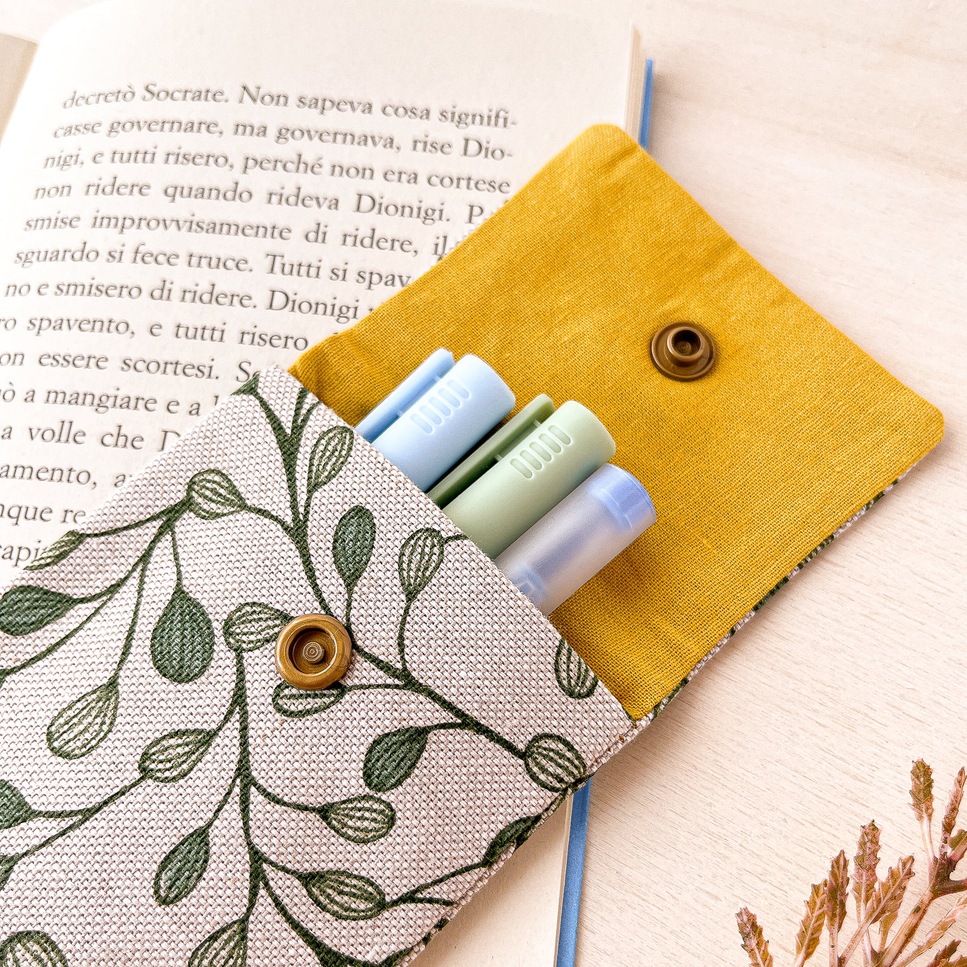 You can combine your new pen holder (or create the perfect gift) with a matching fabric bookmark! Choose between the standard bookmark and the corner bookmark in the 'match with' section or buy both together with the pen holder with the 'standard +corner' option.