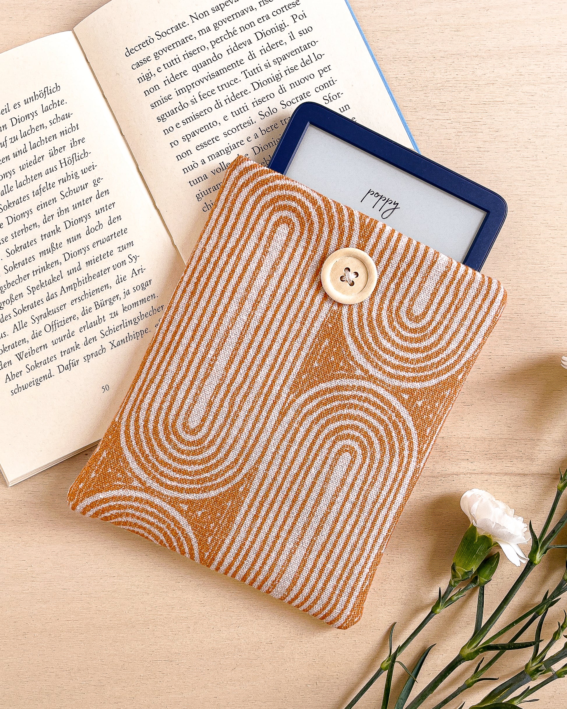 Of threads and books' padded e-reader sleeve are entirely handmade by Tina (that's me, hi!) from OEKO-TEX certified cotton.