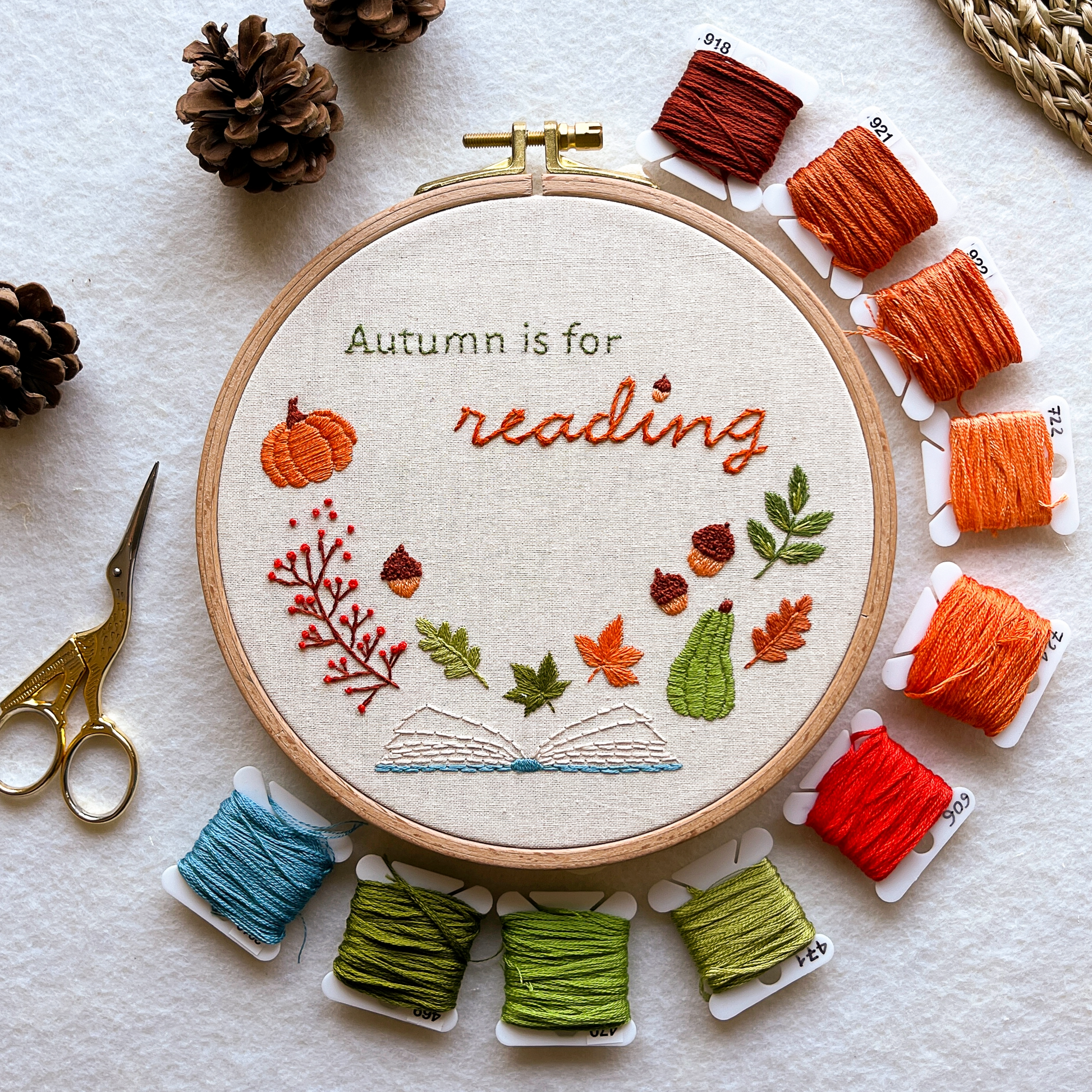 Autumn is for reading - pattern di ricamo a mano con istruzioni e video tutorial
