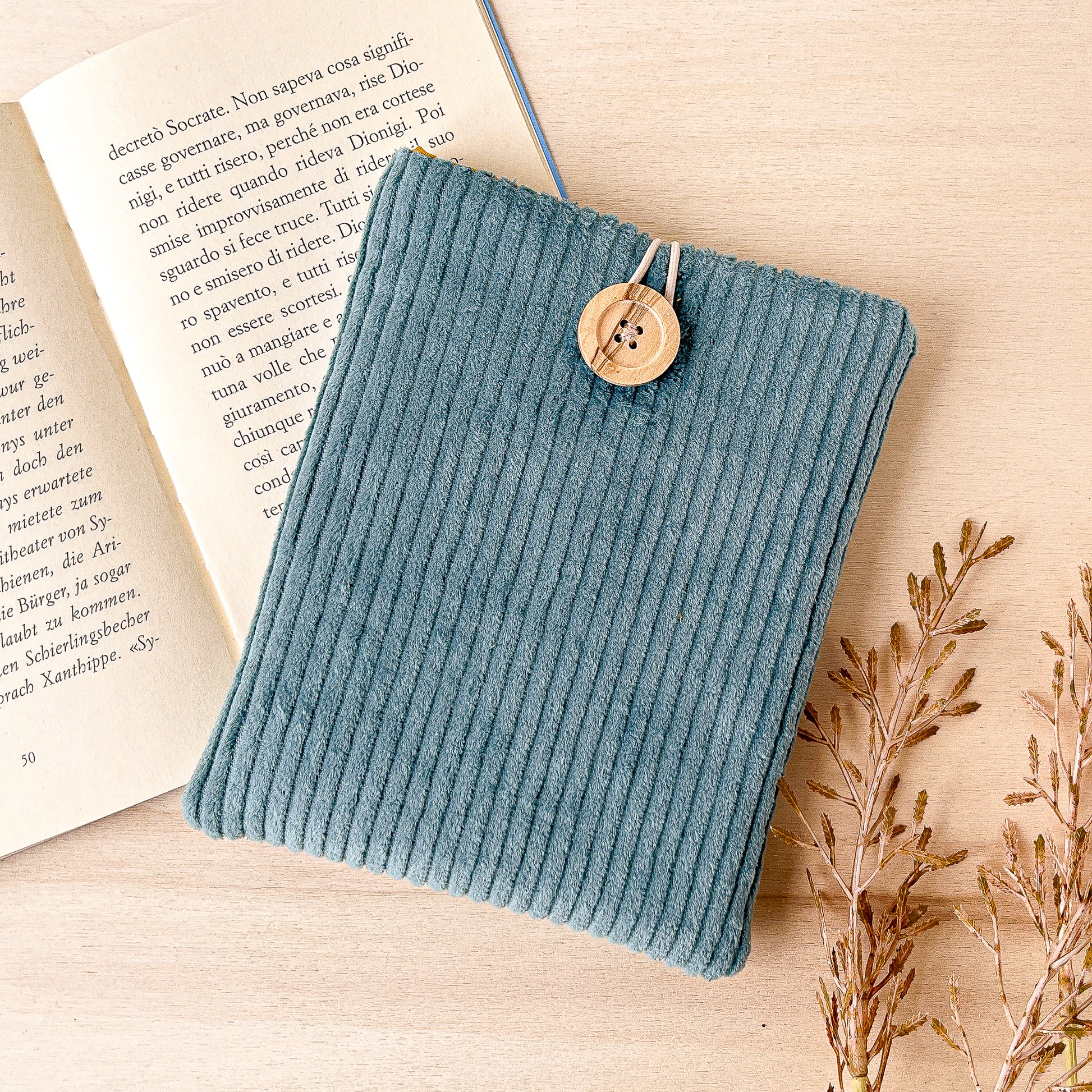 Le custodie imbottite per E-reader di Of threads and books sono realizzate interamente a mano da Tina (sono io, ciao!) in cotone certificato OEKO-TEX.