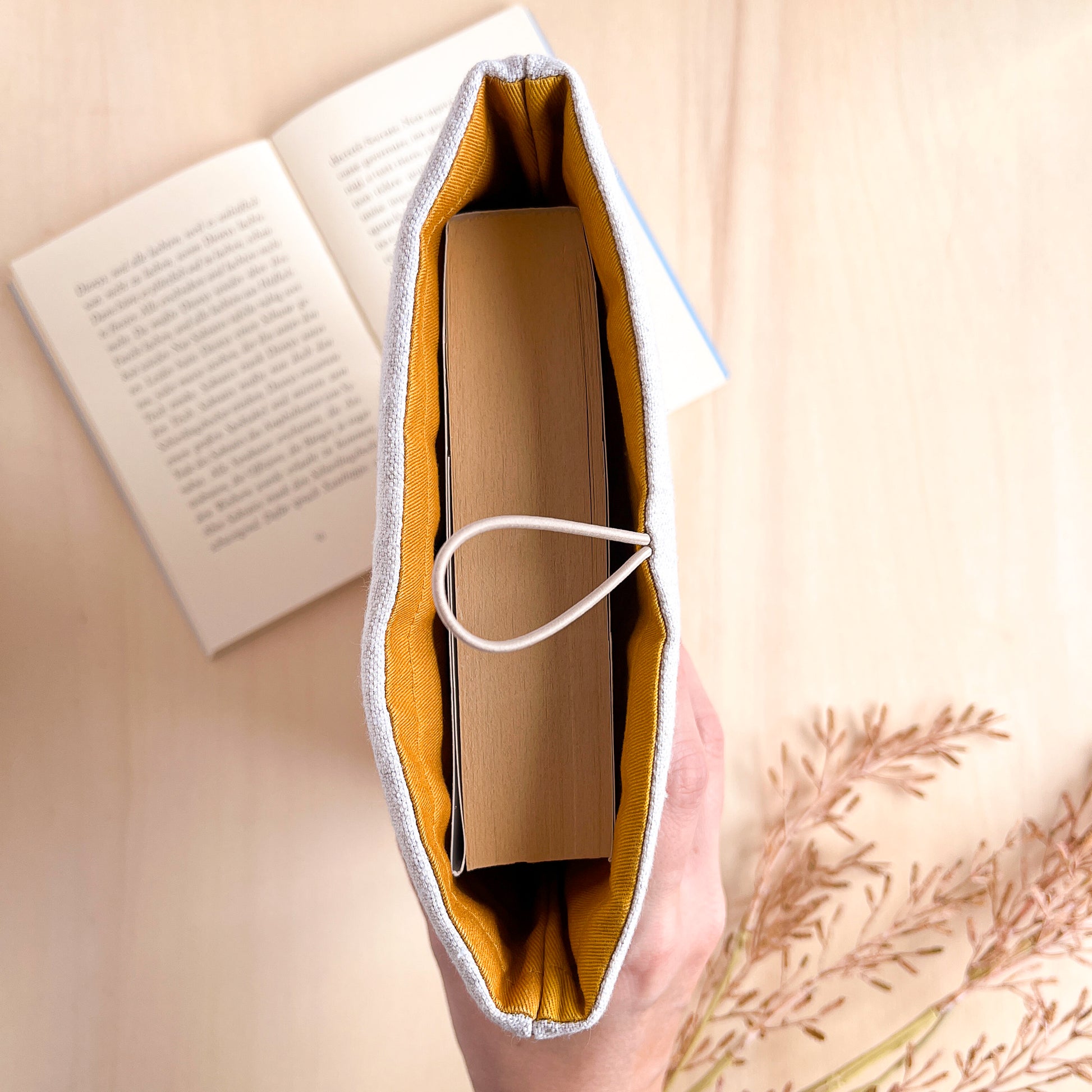 - STANDARD: misura 20x25 cm. Funziona con la maggior parte dei libri tascabili e cartonati fino a 17x24 cm. La tasca può contenere un quaderno o un e-reader di dimensioni fino a 160x115 mm (es. Kindle basic 6" o Kobo Clara) [mostrato in foto]. La mia scelta consigliata per i regali!