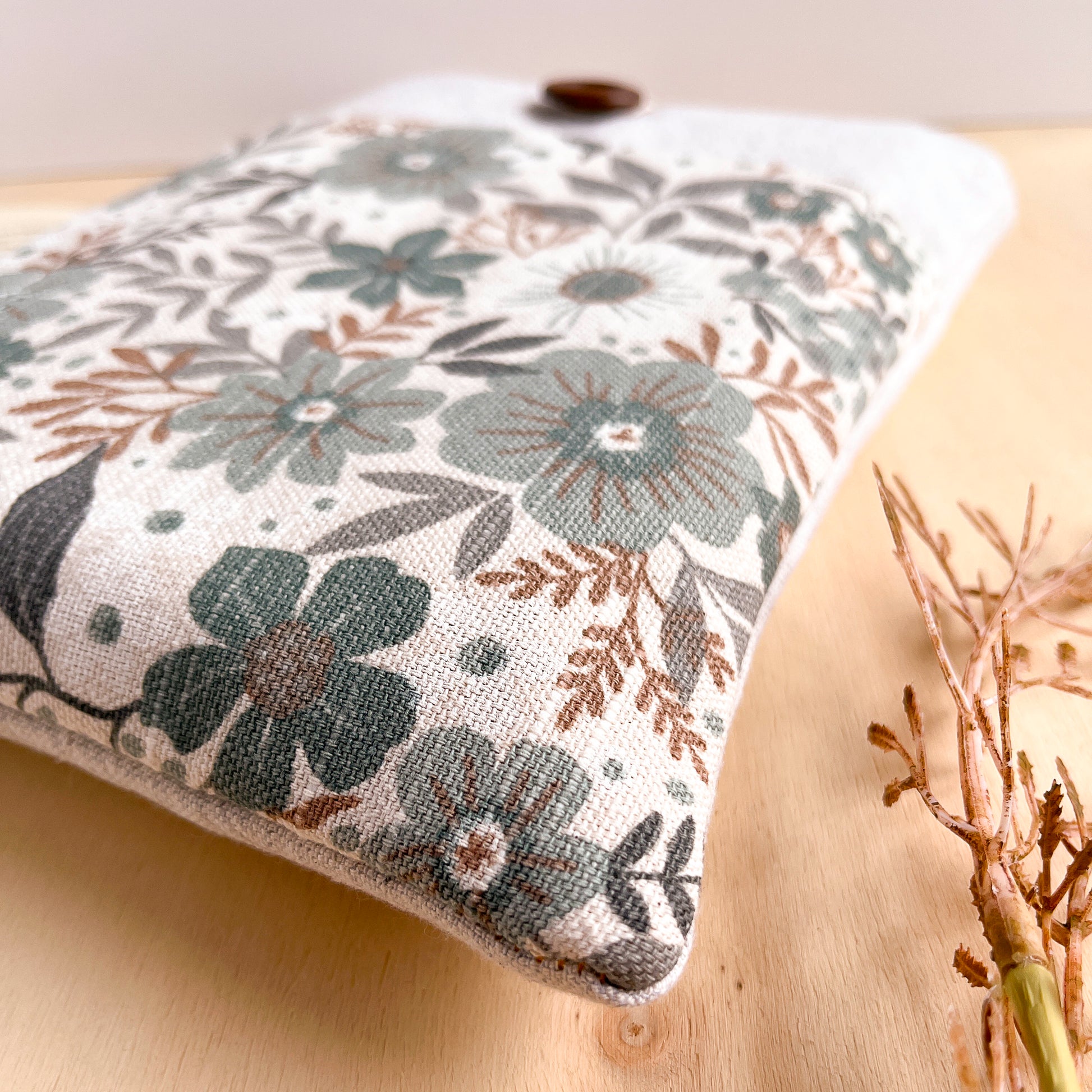 Custodia per libri imbottita con tasca a motivo a fiori azzurri