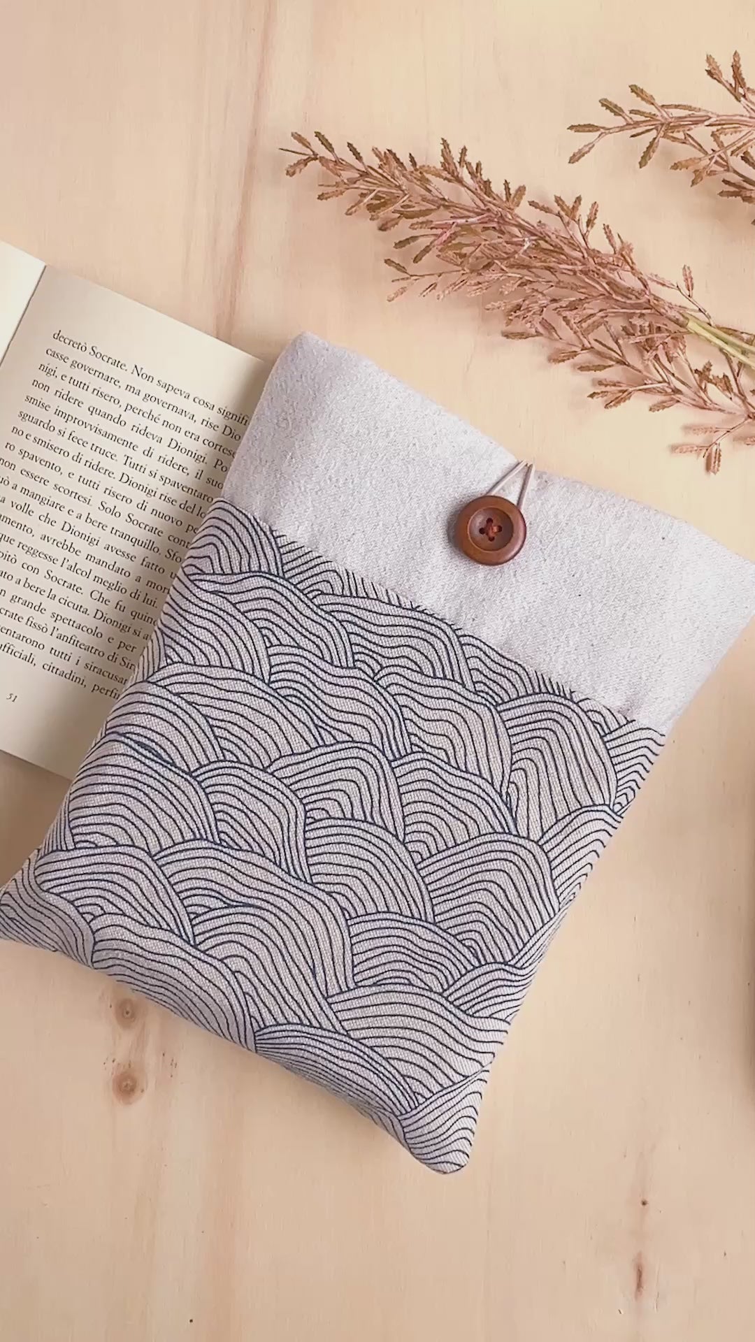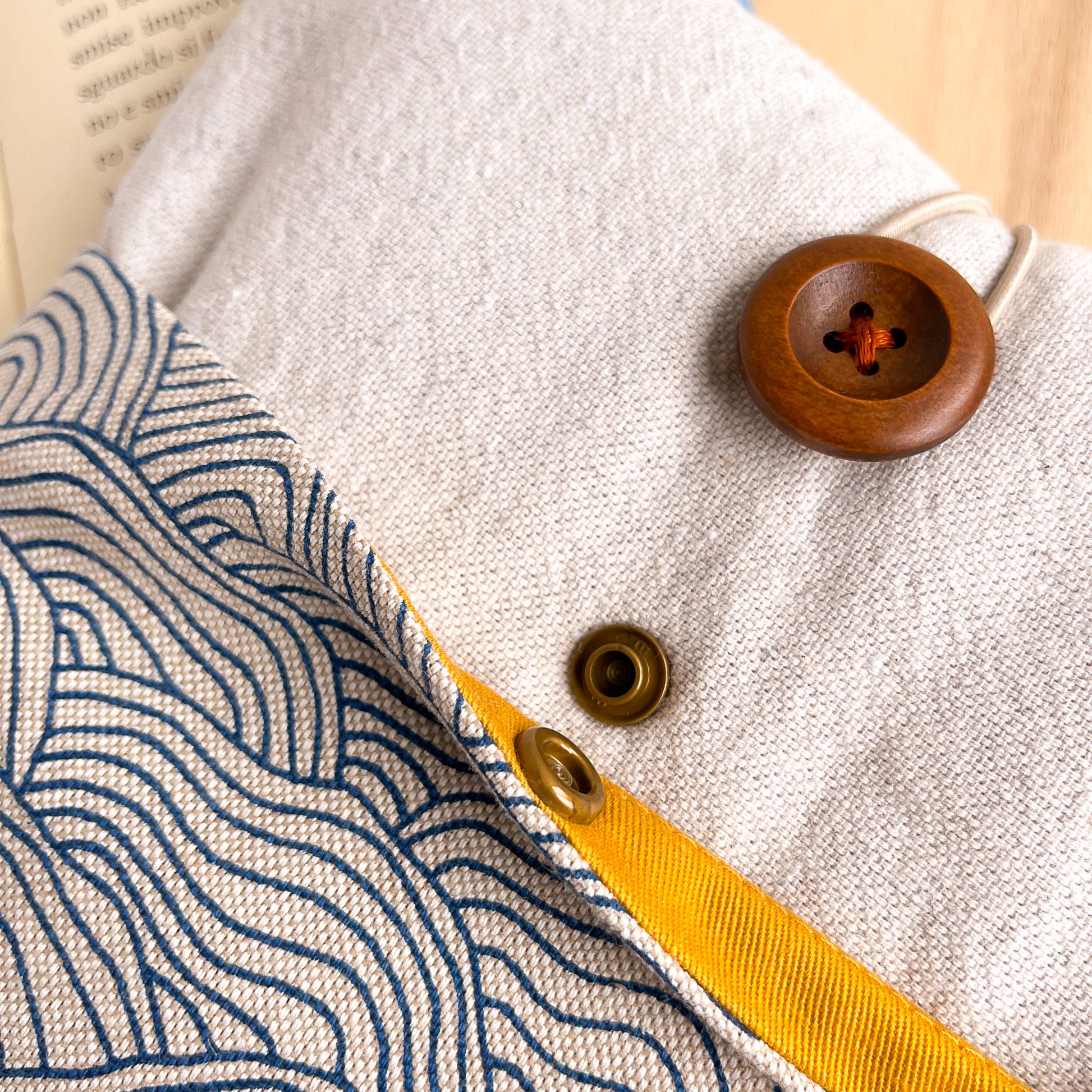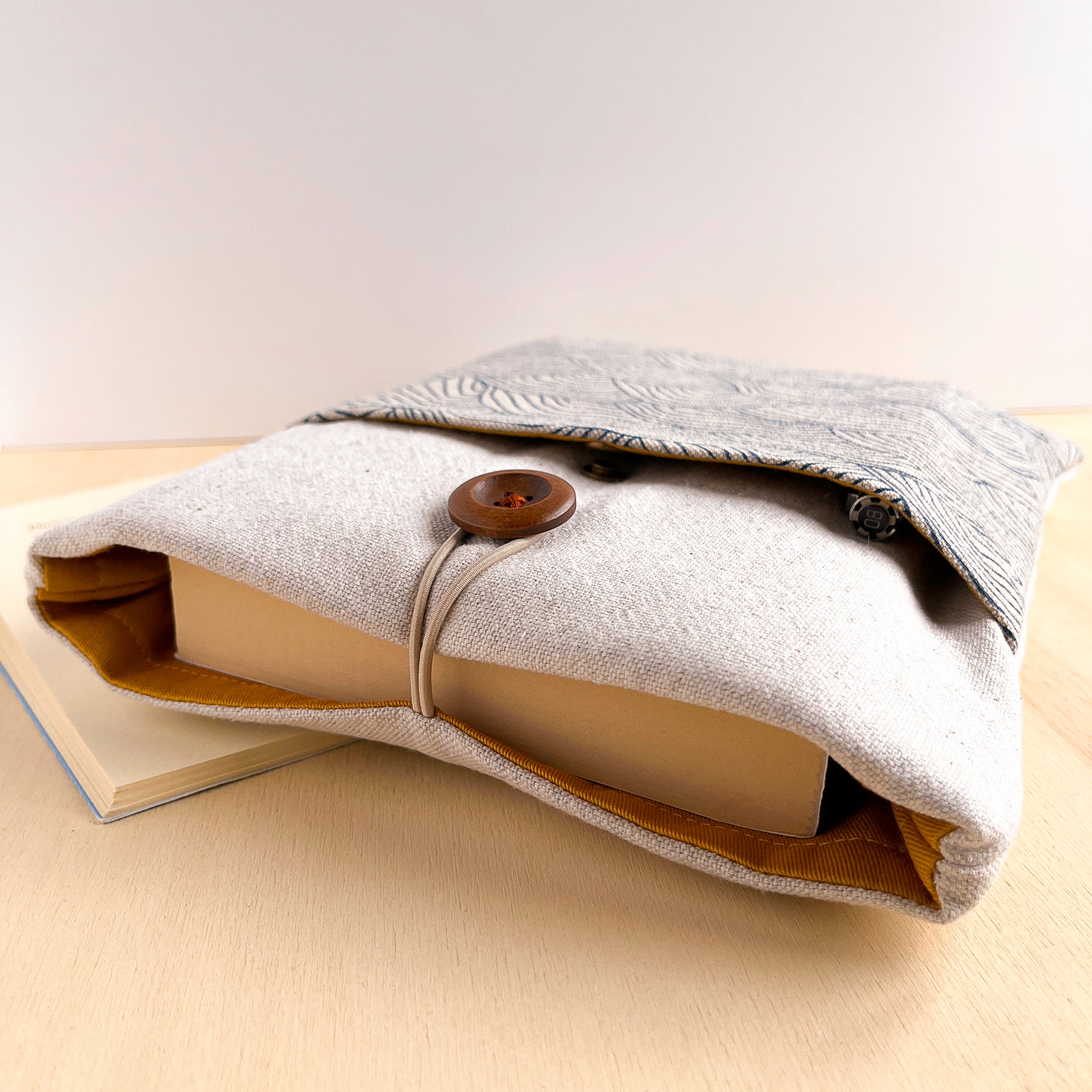 Le custodie per libri imbottite di Of threads and books sono realizzate interamente a mano da Tina (sono io, ciao!) in cotone certificato OEKO-TEX.