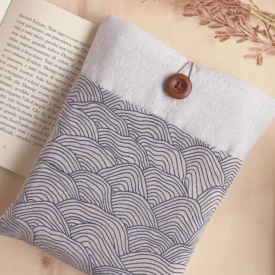 Custodia per libri imbottita con tasca a motivo onde blu