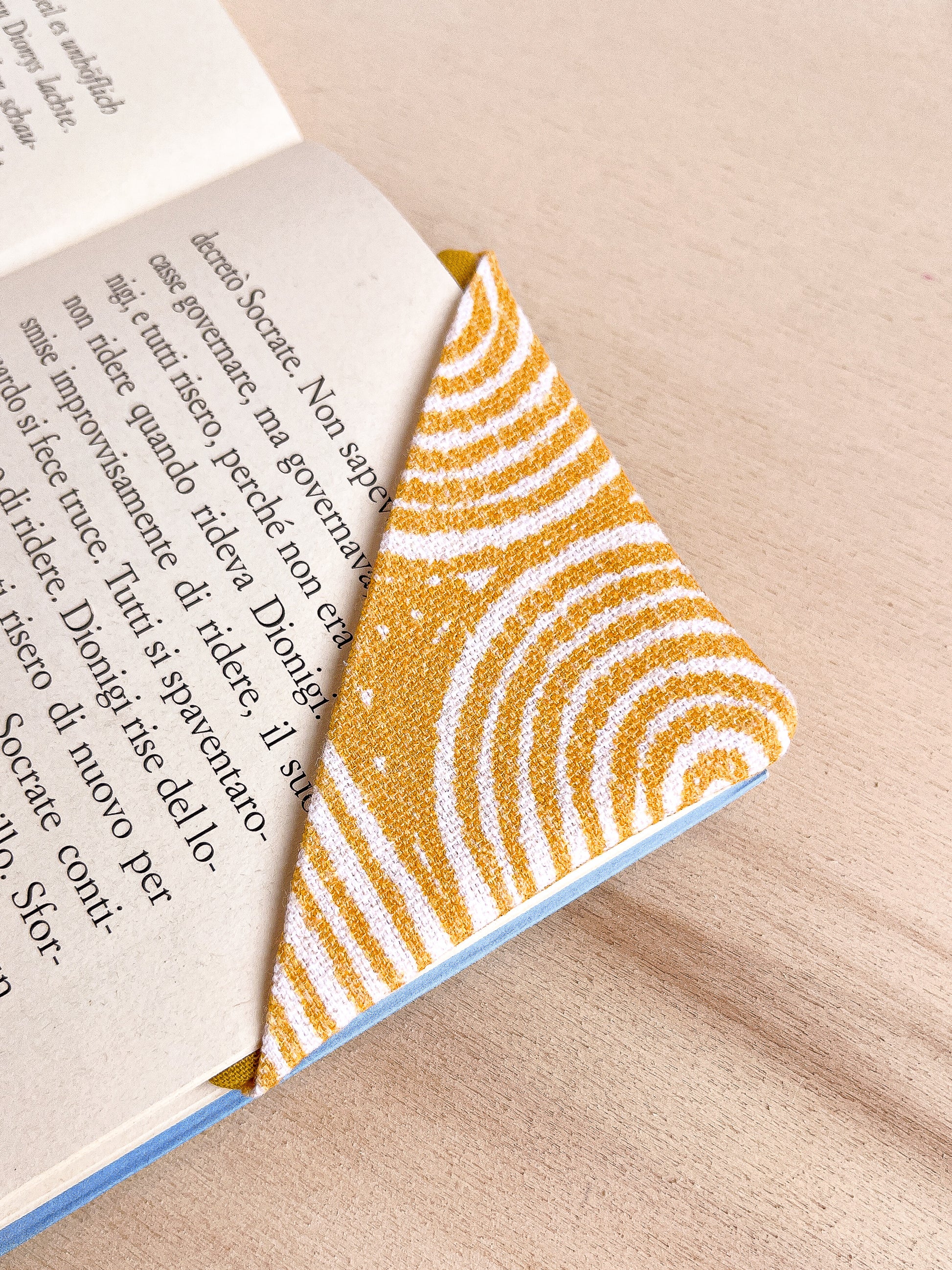 Segnalibro in stoffa ad angolo con motivo geometrico giallo