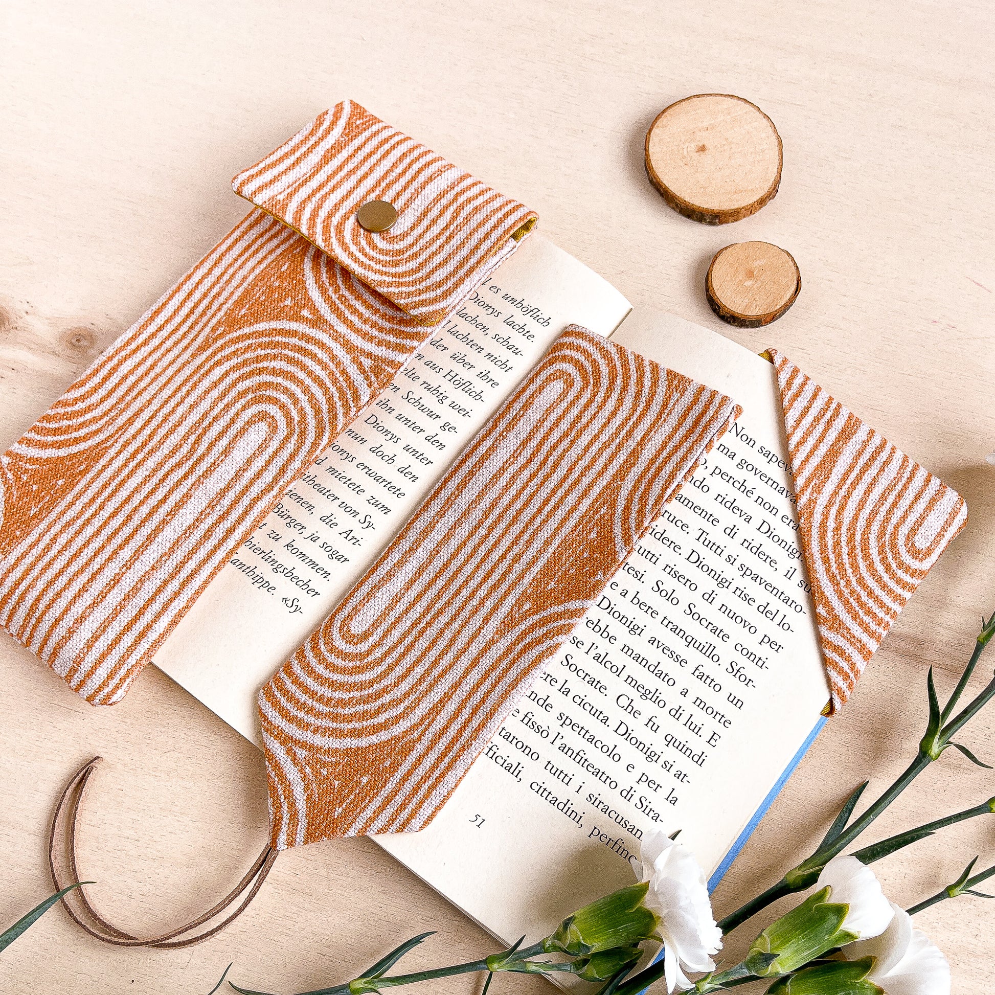 Segnalibro in stoffa con motivo geometrico arancio
