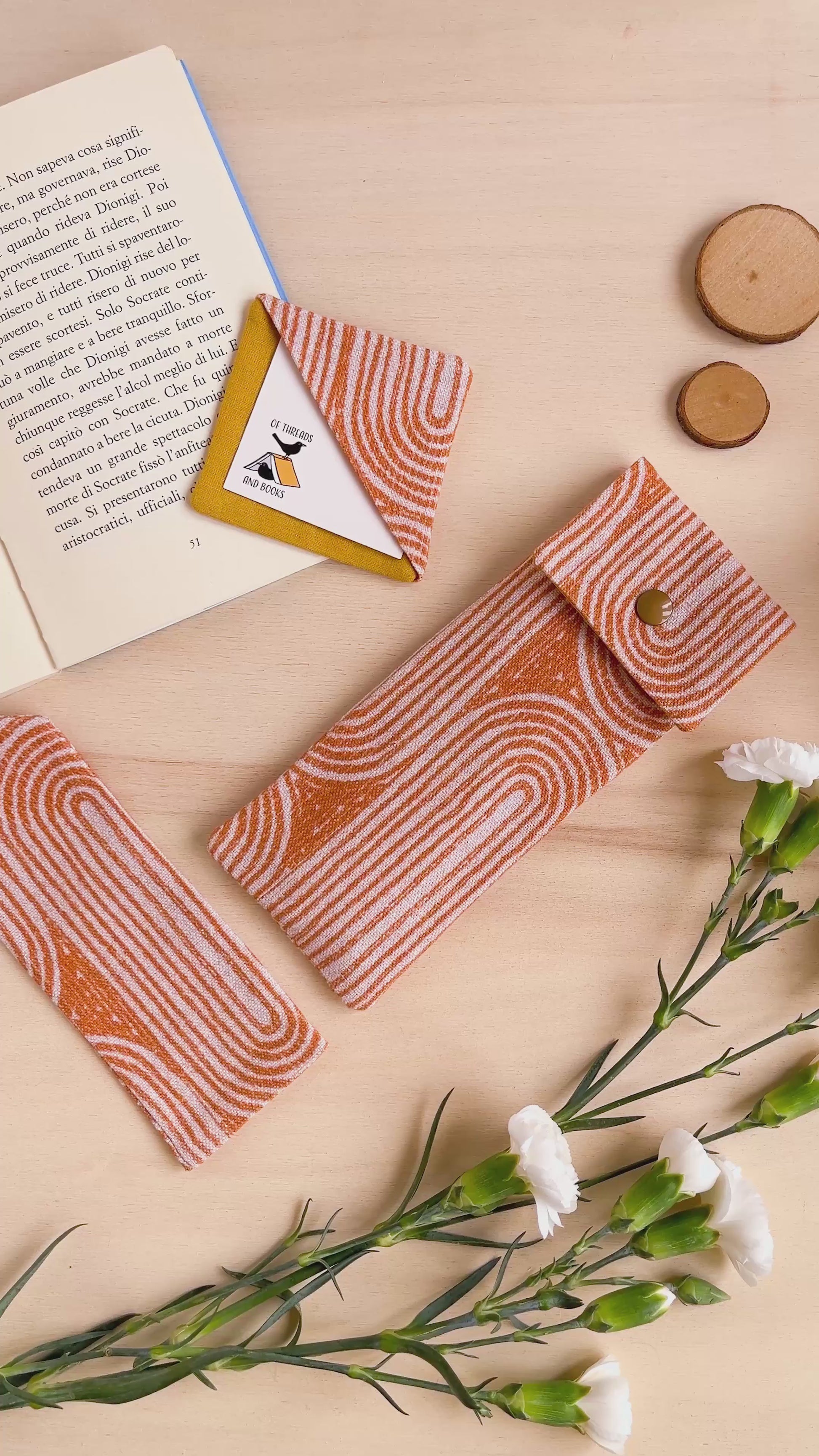 I segnalibri in stoffa di Of threads and books sono realizzati interamente a mano da Tina (sono io, ciao!) in cotone certificato OEKO-TEX.